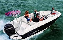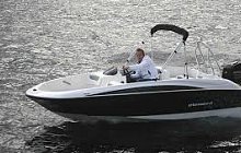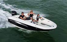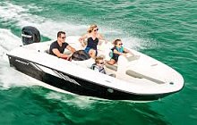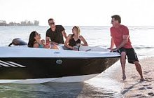 It comes standard with a powerful Mercury® outboard 75HP motor—which works in perfect tandem with the POWERGLIDE® hull design to provide exciting performance for cruising and watersports. In addition, it has bow lounges, a full-width midship lounge and dual bucket seats. Storage below the lounges, in the deck and under the sundeck, among other places, is spacious enough for everyone’s gear (and it’s all finished for easy cleanup)